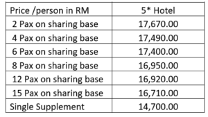 - Accommodation on Double sharing on Bed and Breakfast basis at hotels or similar.