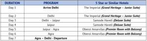 - Rates are based on the hotels mentioned in this proposal, subject to availability upon booking.