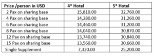 - Rates are communicated subject to the rates known to date (subject to increase in government taxes and entry to monuments without notice).