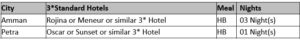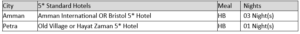 - Supplement Per person for Using Hilton Hotel in Amman instead of the above-mentioned Hotels will be105.00 USD & 80.00 USD for S/S pp for the 03 nights