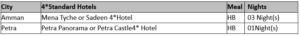 - Supplement Per person for Using Golden Tulip or Sulaf Luxury or Seven Roses Hotel in Amman instead of the above-mentioned Hotels will be 24.00 USD & 15.00 USD for S/S pp for the 03 nights