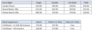 **PACKAGE ON FB BASIS WITH RETURN SEAPLANE **TRANSFERS Infants 0-1.99 are Complimentary