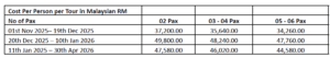 Total Cost per person sharing DBL/TWIN room