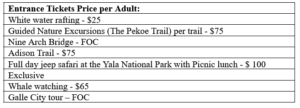 - Entrance Ticket fees