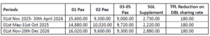 - Peak period Supplement per person US$ 120 (20th Dec 2025-10th Jan 2026)