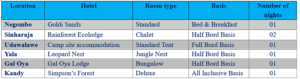 ● 18.30: Check-into Galoya Lodge and spend rest of the day relaxing and enjoying the hotel facilities.