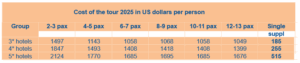 - Supplement for Lunches is 115 USD per person per tour in tourist-class restaurants